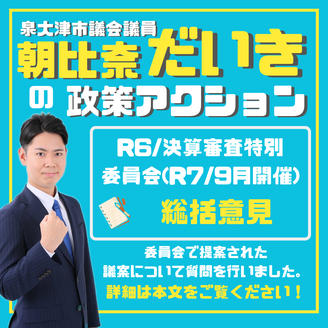 ホーム>政党・政治家>朝比奈 だいき (アサヒナ ダイキ)>【泉大津市議会議員】令和6年度決算審査特別委(総括意見)について【朝比奈だいき】