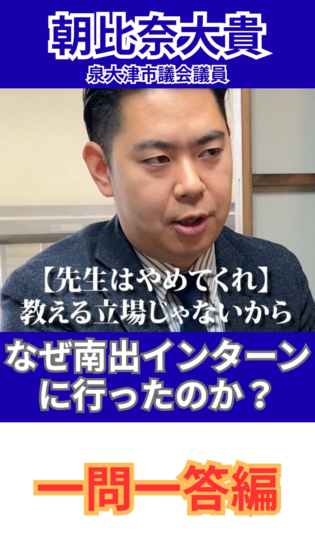 【朝比奈だいき】一問一答!「なぜ南出インターンに行ったのか?」【泉大津市議会議員】