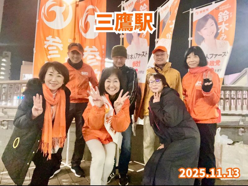 ホーム>政党・政治家>鈴木 みか (スズキ ミカ)>2025.11.13(木)①朝7:00〜8:40.仙川駅②夕18:00〜19:00三鷹駅とでも...