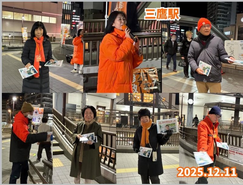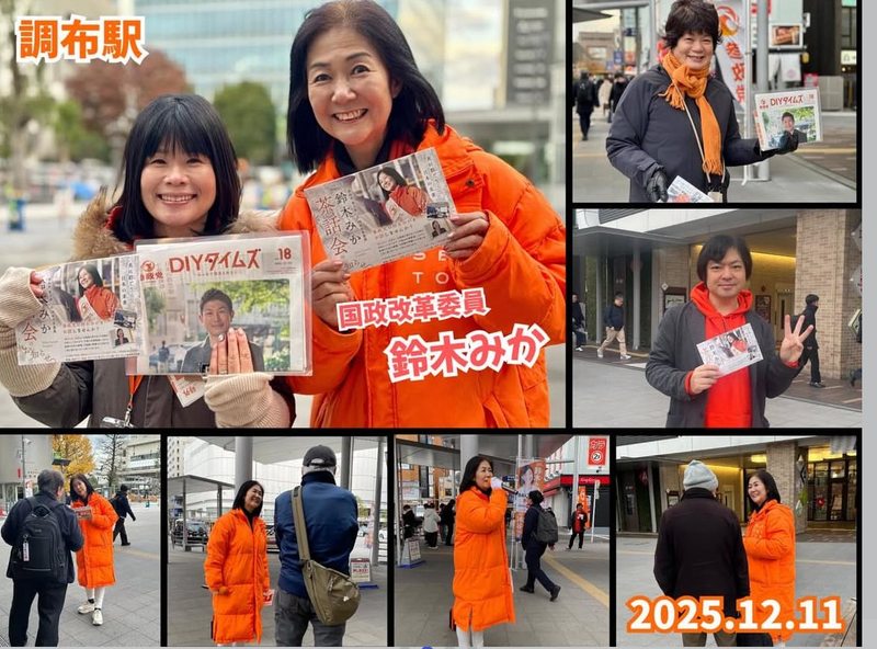 ホーム>政党・政治家>鈴木 みか (スズキ ミカ)>令和7年12月11日(木)①調布駅7:00~8:30②三鷹駅18:00〜19:00調布駅の紅葉...