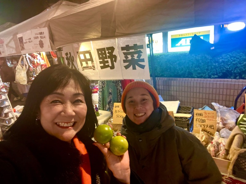 マルシェでは、いつもの美味しい秋田野菜のお姉さんから、今日もこの時期の楽しみ皮まで食べられる無農薬レモンをゲット🍋