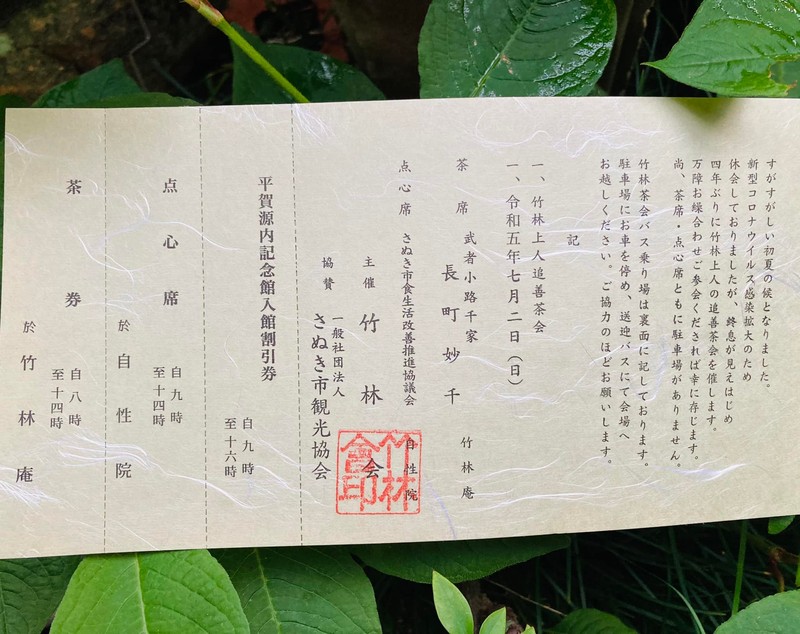7月2日日曜日、さぬき志度竹林庵と自性院に於いて、さぬき三大茶会のひとつ「竹林茶会」が行われます。