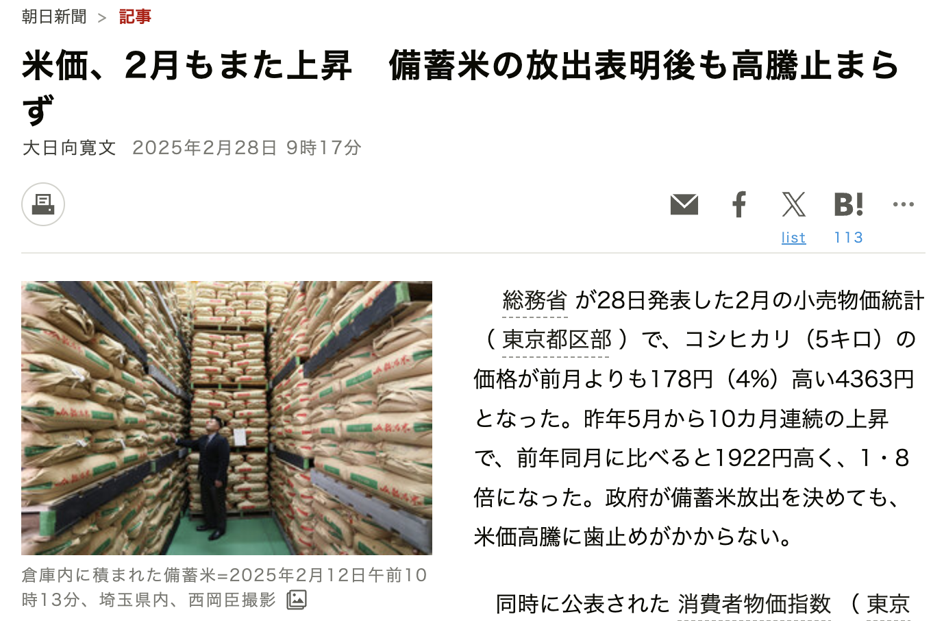 さらに米不足で備蓄米放出なんだが、コメの価格が下がらないばかりか、店頭からコメは消えている。