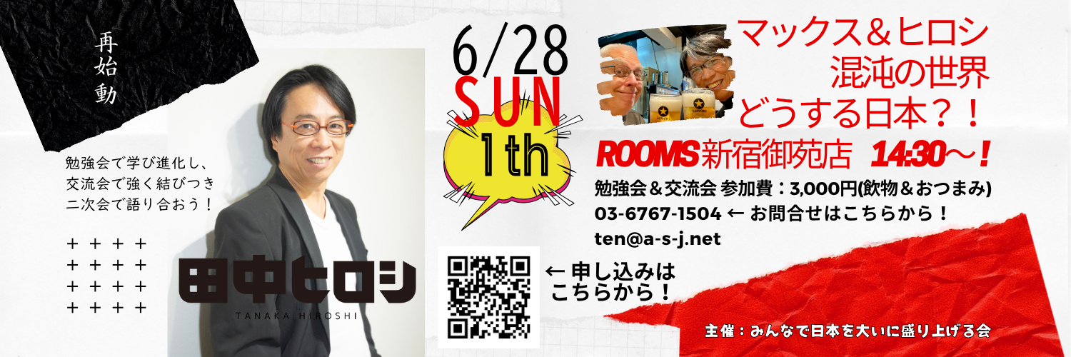 ホーム>政党・政治家>田中 ヒロシ (タナカ ヒロシ)>5/17開催!門田隆将氏中野区登壇!高市政権[移民,安全保障,外交,憲法]日本の夜明けを語り尽くす!