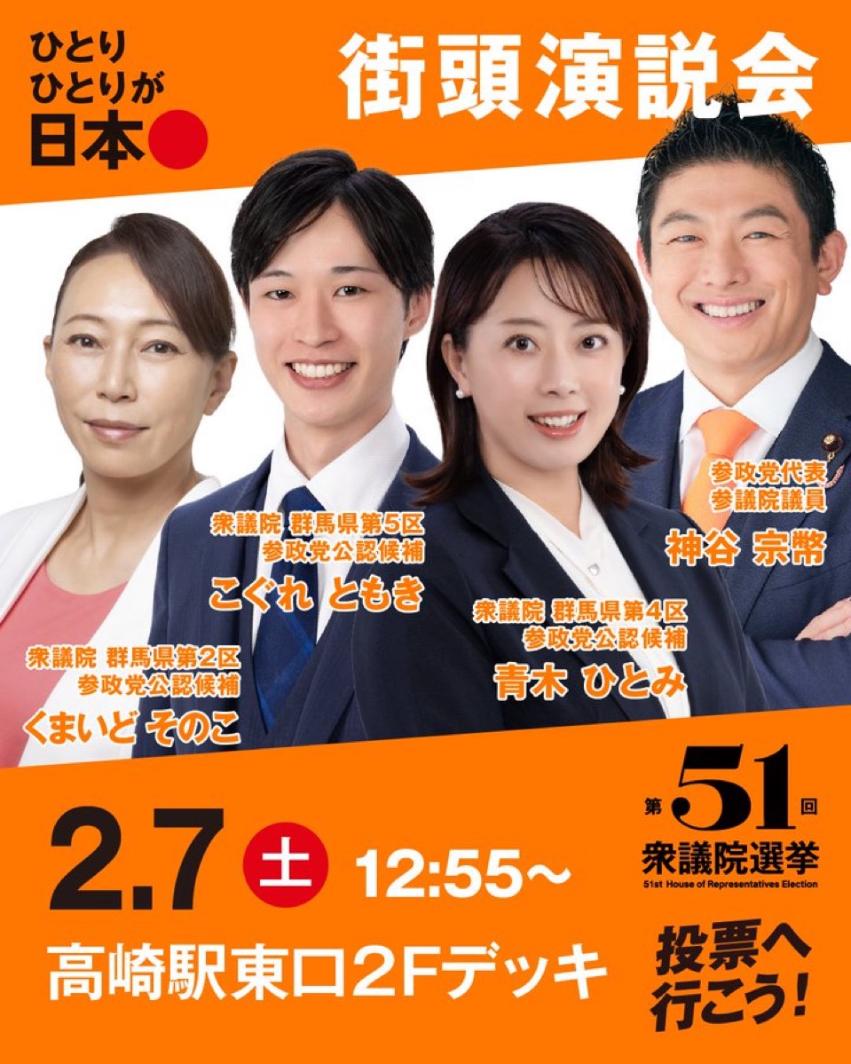 【神谷代表が高崎に来る!】街頭演説のお知らせ!