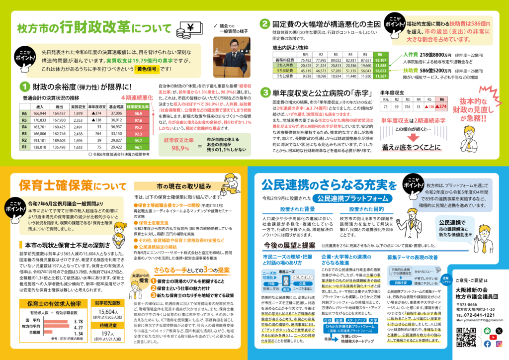 市政報告Vol.05発行:枚方市の財政は大丈夫?