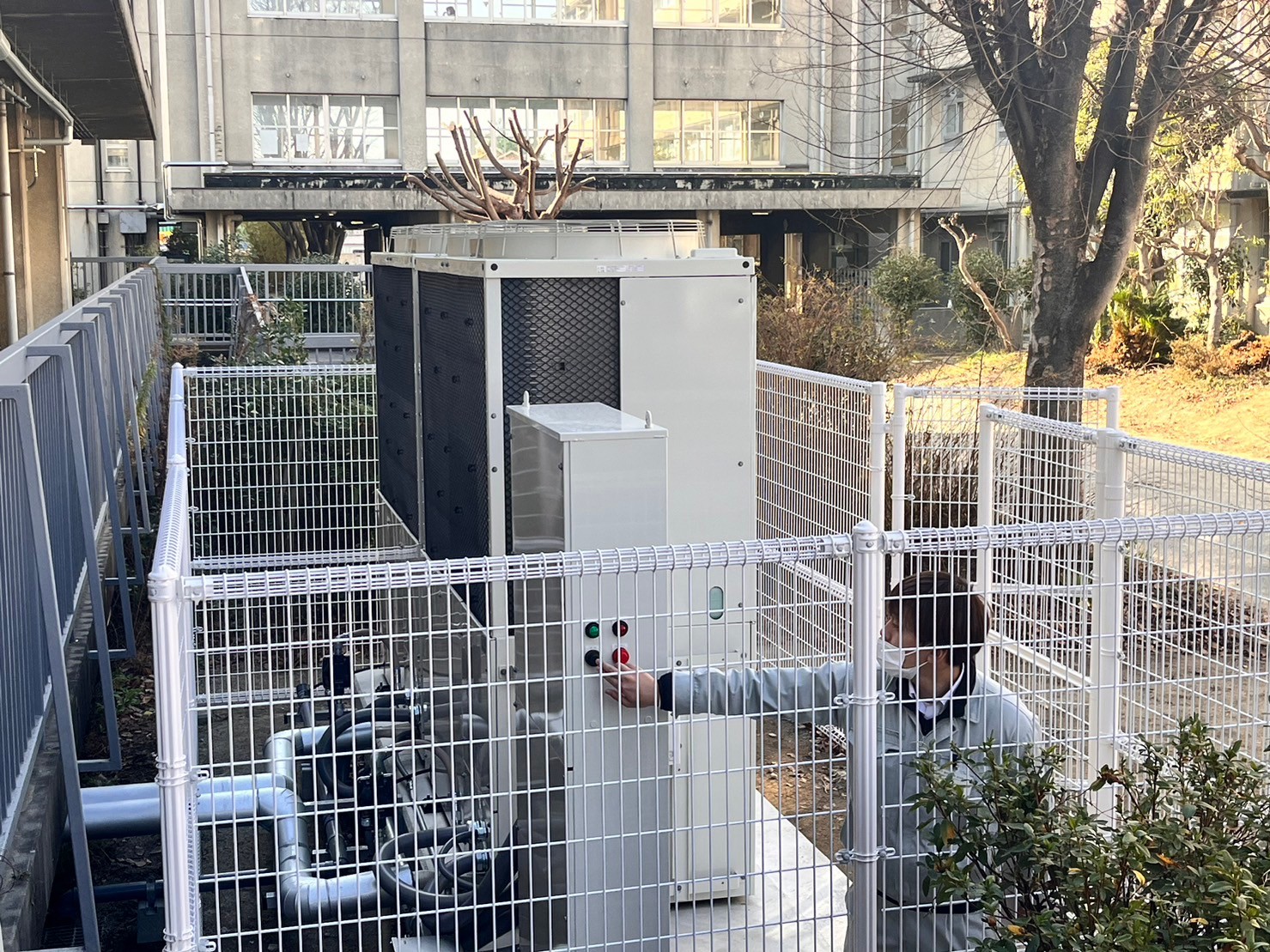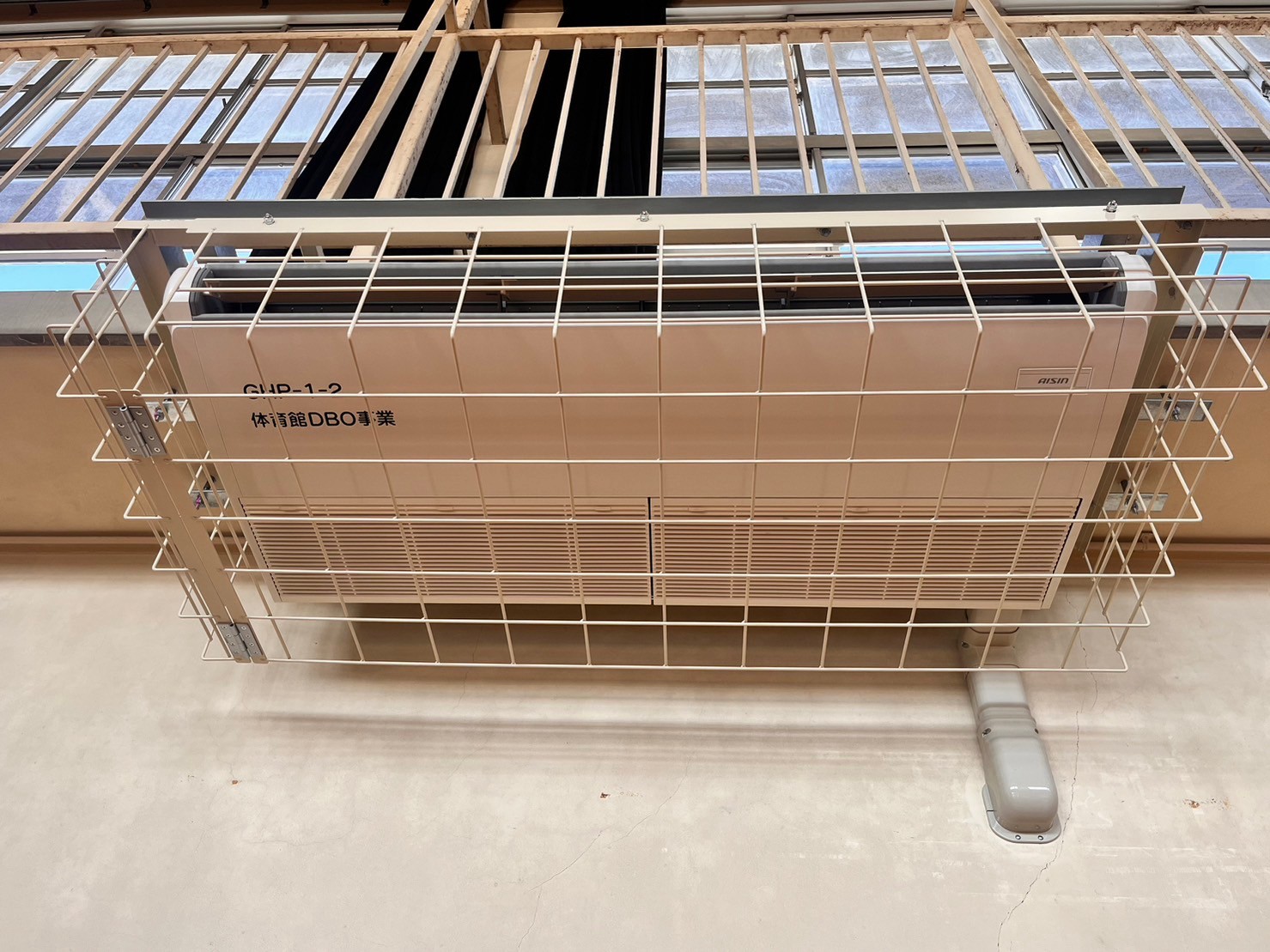 先日枚方市立蹉跎中学校にて体育館空調設備設置の見学会に参加しました。