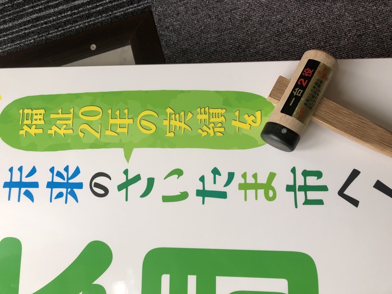 立て看板の設置を御願いすることができました。大工仕事は、慣れていませんがしっかりと証票を打ち付けました。