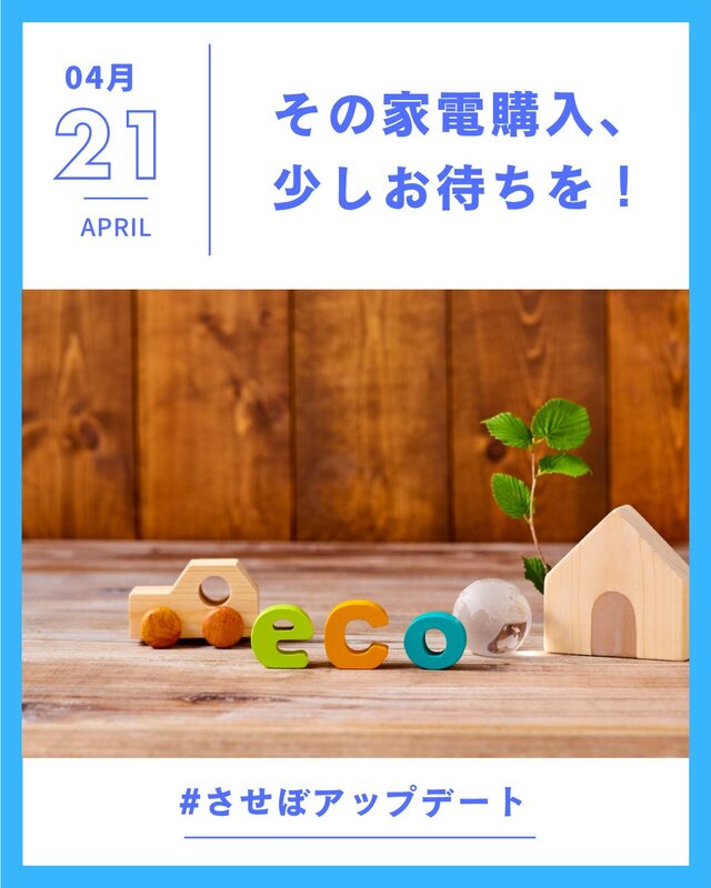 対象となるエアコン・冷蔵庫・テレビを購入された方に、地域通貨「させぼeコイン」で使える“させぼeエコポイント”を発行。なんと【1台あたり最大2万円分】が還元されます。