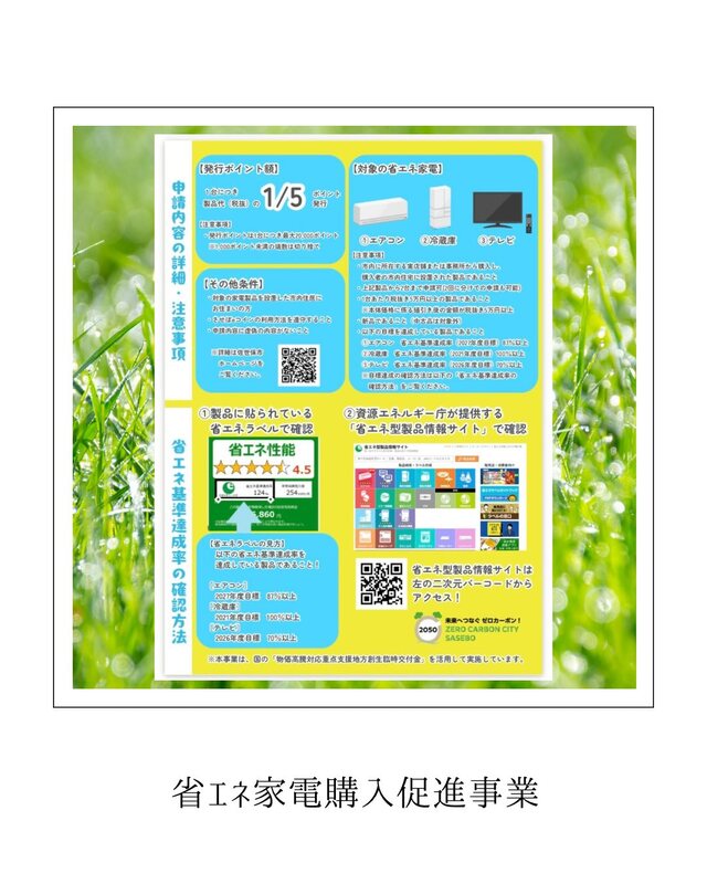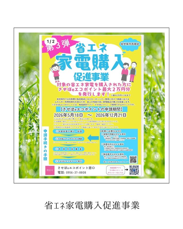 詳細は【省エネ家電 佐世保市】で検索か、【佐世保市ホームページ】をご確認ください。