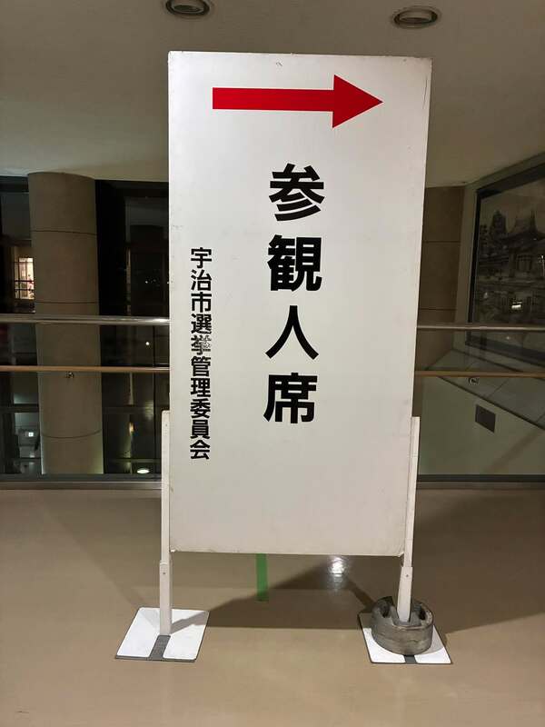 写真は、有権者であれば誰でも開票作業を見学出来る参観人席から。宇治市の有権者が府政をどう受け止めているか、テーブル1卓にリアルに積み重ね上げられた51,812名の想いを読み取り、そこにない96,299名のサイレントな想いを推し図りながら、光ある場所からではなく陰も含めた一隅から、より客観的に政治の今の現実を冷静に捉える機会ともなりました。