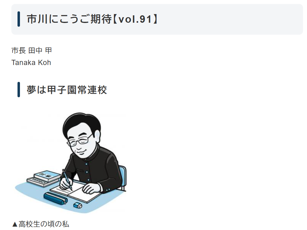 田中甲市長は、市川市公式広報の中で、市川市には市立高校がないことに触れ、市川市立中学校で学んだ生徒が、県立高校という選択肢のほかに、魅力ある市立高校を目標にできる新しい流れを作りたいと述べています。