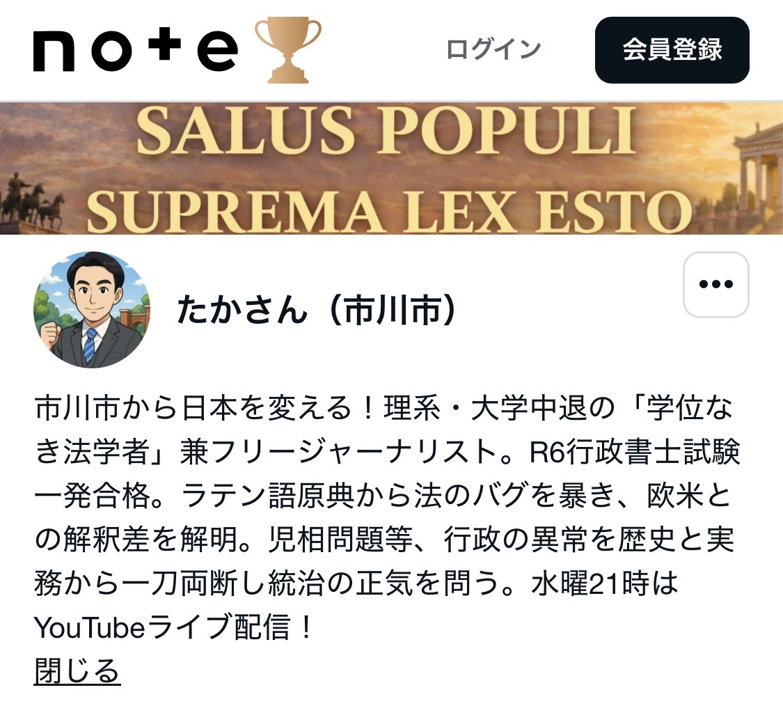 ホーム>政党・政治家>たか さん (タカ サン)>【市川市】専門的な発信はnoteにもまとめています