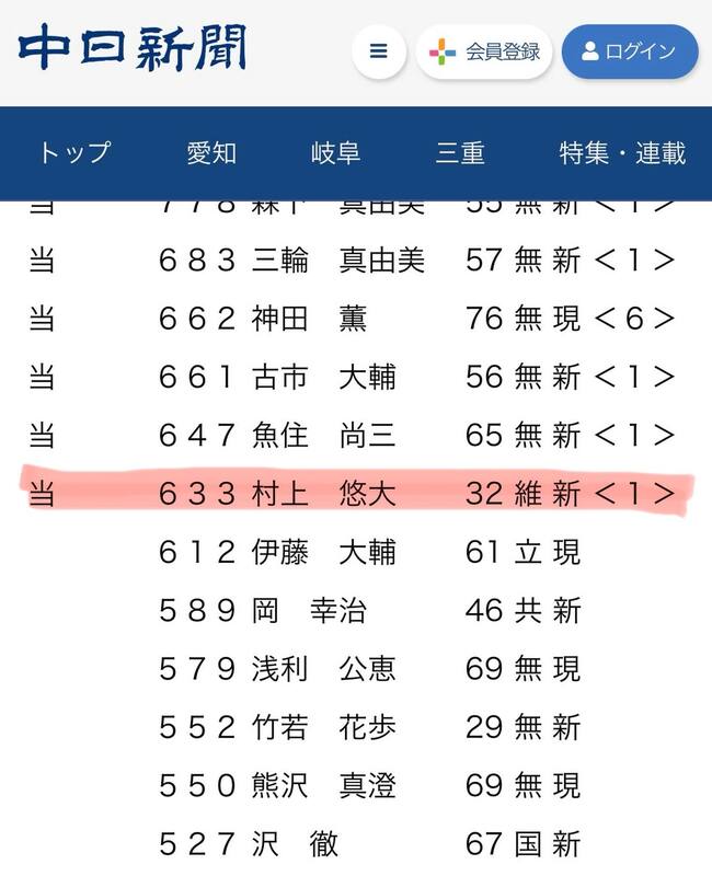 【北名古屋市議会議員選挙】北名古屋市議会議員選挙では日本維新の会公認の#村上ゆうだい最下位では...
