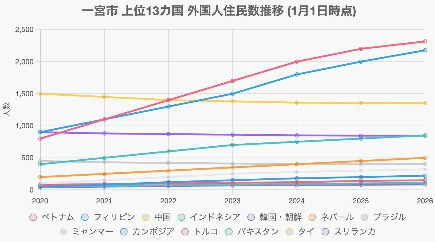 【一宮市の外国人国籍推移】2026.1.1付◼️2020年から推移
