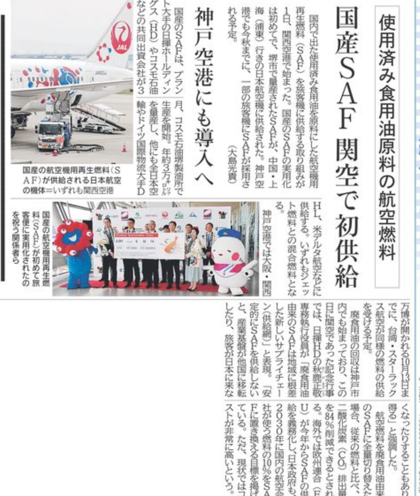 今日は、神戸新聞(5月1日付)でも大きく報じられた「国産SAF(持続可能な航空燃料)」の関西初供給、そして今秋に予定される神戸空港での導入について、最新情報と私の思いをお伝えします。