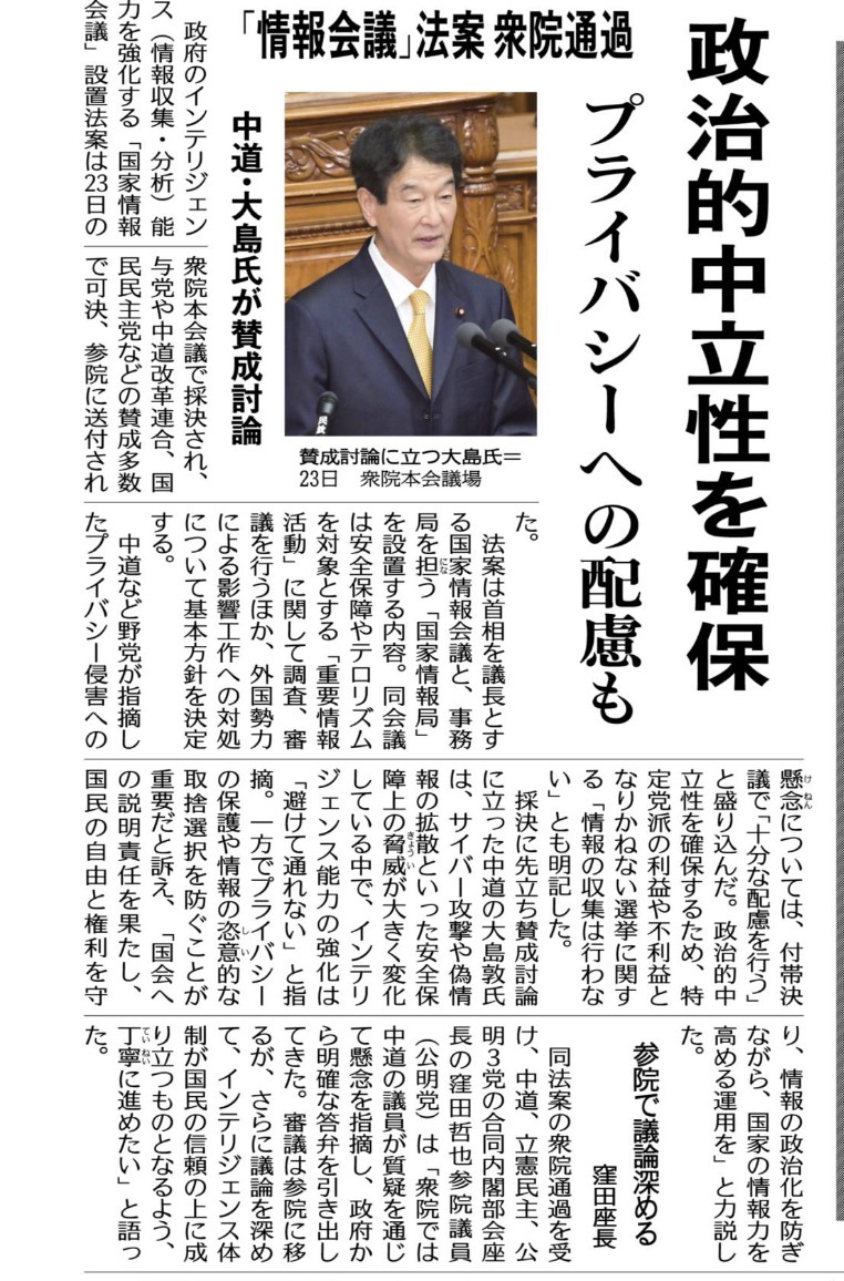 ● プライバシー保護と「政治的中立性」を守る運用へ 公明党は、特定政党や特定の支持を持つ集団に対する政治的中立性の確保について「十分な配慮を行う」とした附帯決議を盛り込むよう主張してきました。情報の収集・分析にあたり、プライバシーの保護や、国民の自由・権利を守ることを大切にしてほしい、という思いです。中道は「『国会への報告と説明責任』、特にプライバシーへの侵害がないよう運用に向き合うべきだ」と語ったと報じられています。私たちの暮らしを守る安全保障と、私たちの自由を守るプライバシー。その両立を確かにするため、引き続き丁寧な議論が進むよう、私もしっかり注視してまいります。