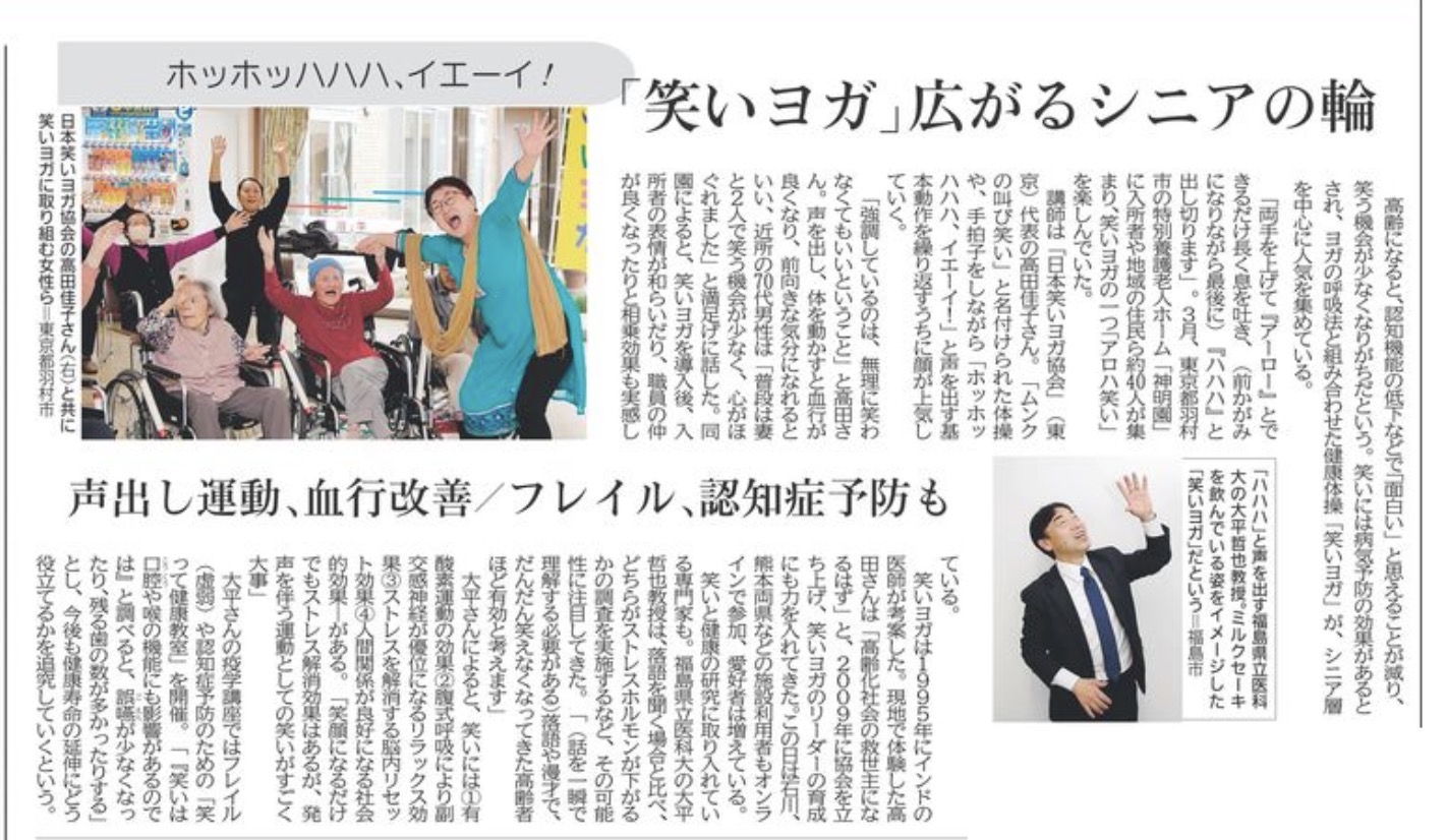 「ホッホッハハハ、イエーイ!」――そんなかけ声で声を出して笑う体操、「笑いヨガ」がシニア世代を中心に広がっています。年齢とともに認知機能や体力の低下が気になる方にとって、楽しみながら続けられる健康法として、注目が集まっています。