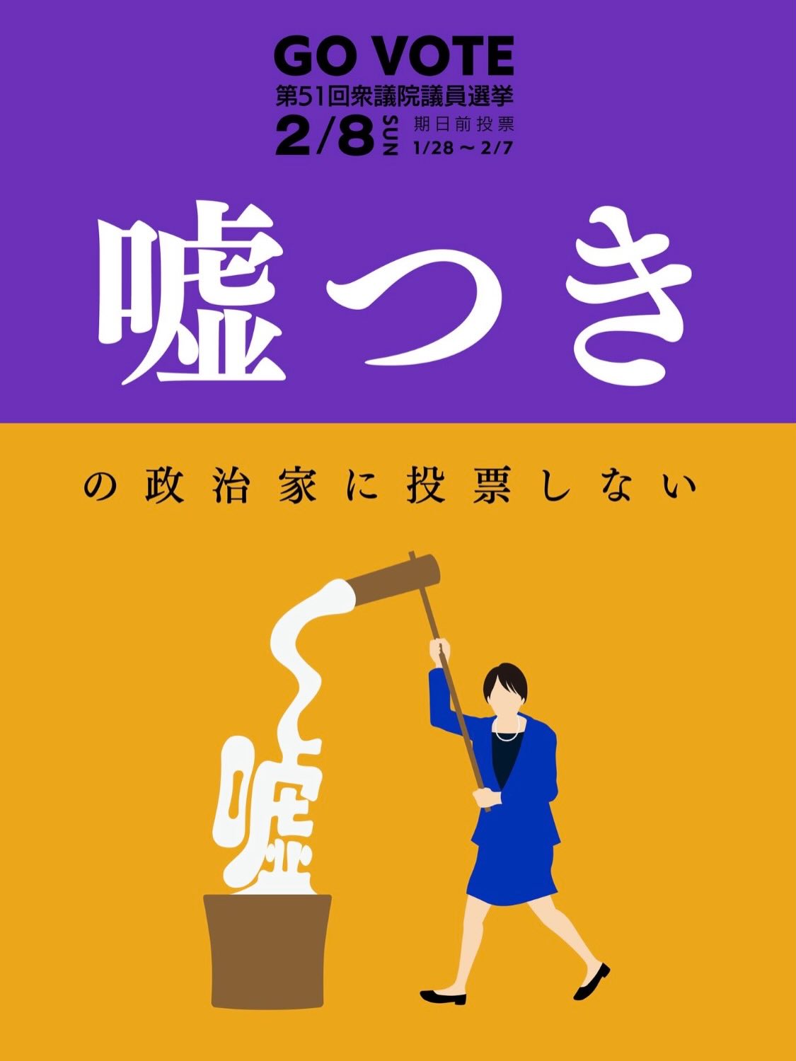 「嘘をつかない政治家」を選ぶことと、「戦争をしない国」を作ろうとしている人のいる政党を選ぶことが私の基準です。