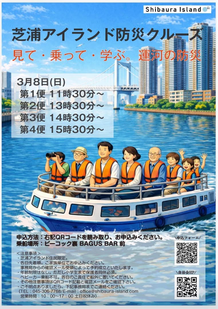 この防災クルーズは、運河から芝浦アイランドの街並みを見つめ直し、防災の視点から地域を理解することを目的とした取り組みです。