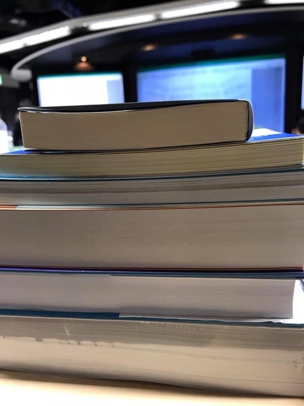 大学院に入学時に渡された分厚い本たち…