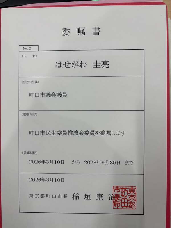 ホーム>政党・政治家>はせがわ 圭亮 (ハセガワ ケイスケ)>【2026年度の主な役職】年度が替わり、私の所属団体の役職も少し変化が生じました。
