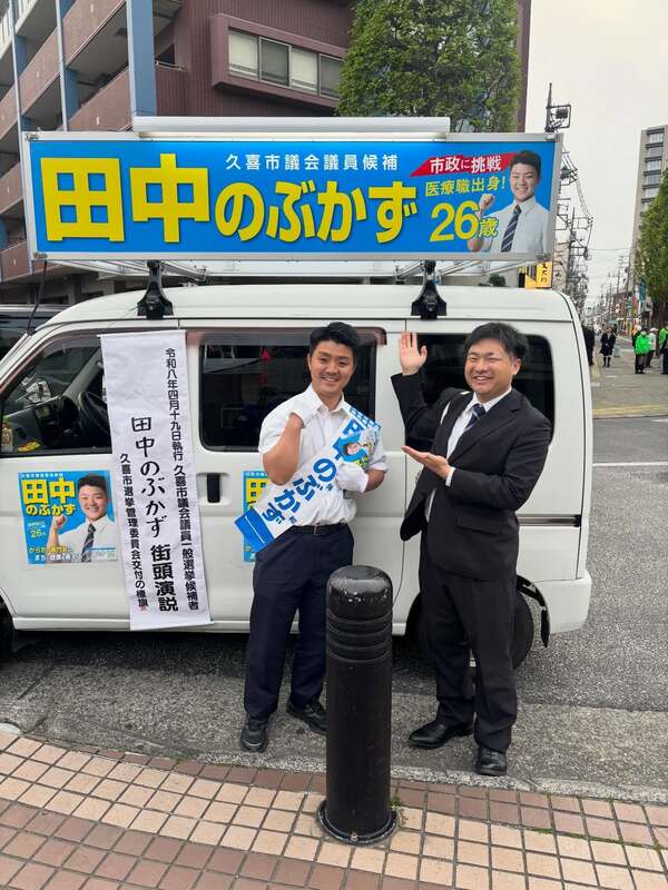 【久喜市議会議員選挙「田中のぶかず」候補応援📣】 埼玉県久喜市でも市議会議員選挙が行われています。26歳無所属の「田中のぶかず」さんを応援しております!理学療法士の経験を活かし、久喜市民の健康と生活を守ります!