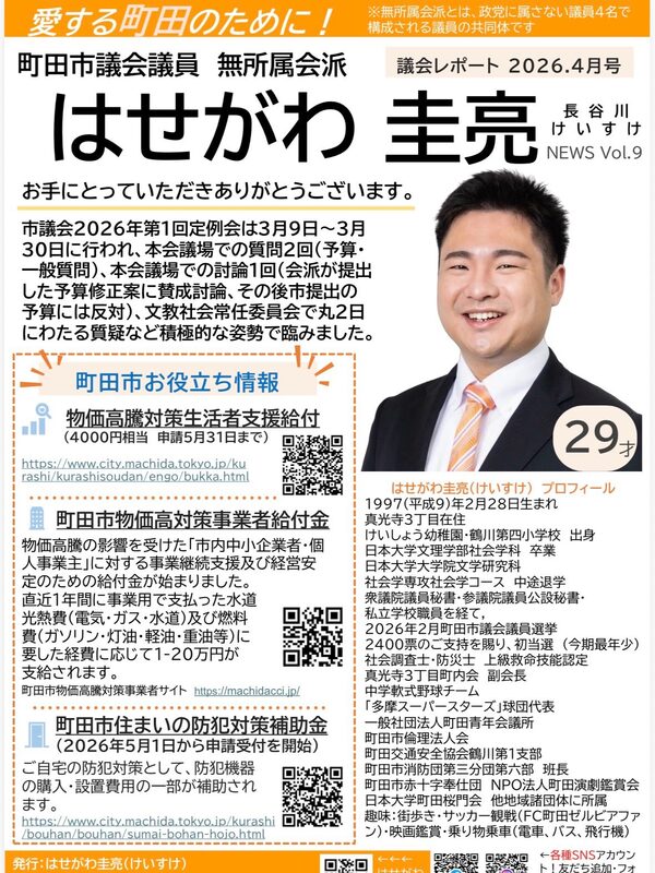 #はせがわ圭亮 #町田市議会 #無所属会派 #町田 町田市