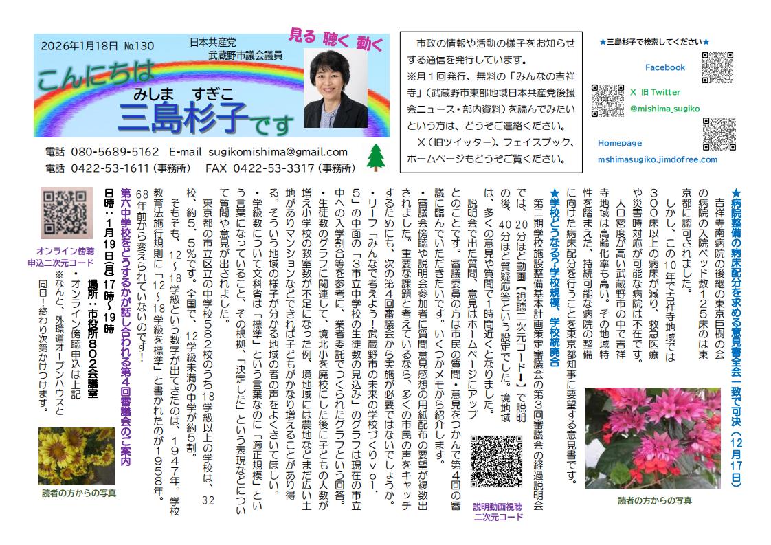 ホーム>政党・政治家>三島 杉子 (ミシマ スギコ)>★病院整備の病床配分を求める意見書全会一致で可決(12月17日)