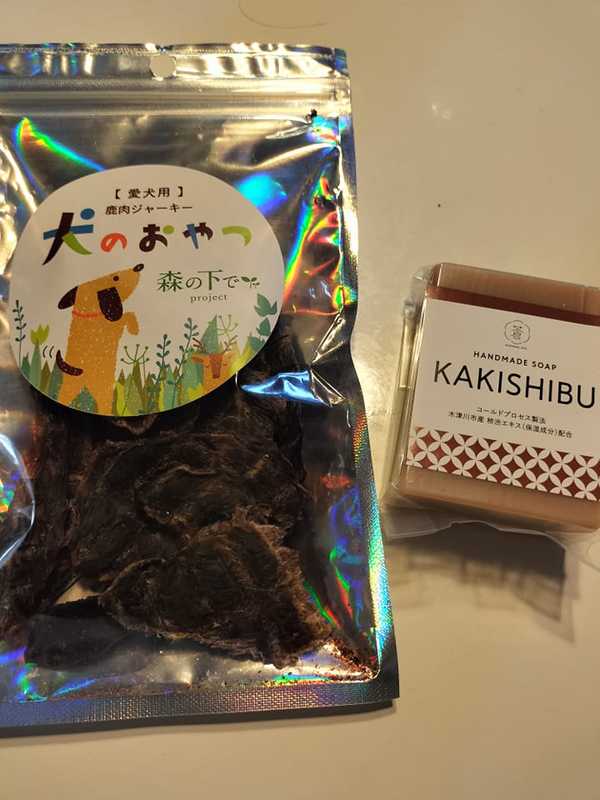 今日は犬用の鹿肉(木津川市産)ジャーキーと柿渋(木津川市産)せっけんを購入👍