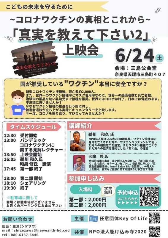 今日は奈良の天理まで『真実を教えて下さい2』の上映会に行ってきました。