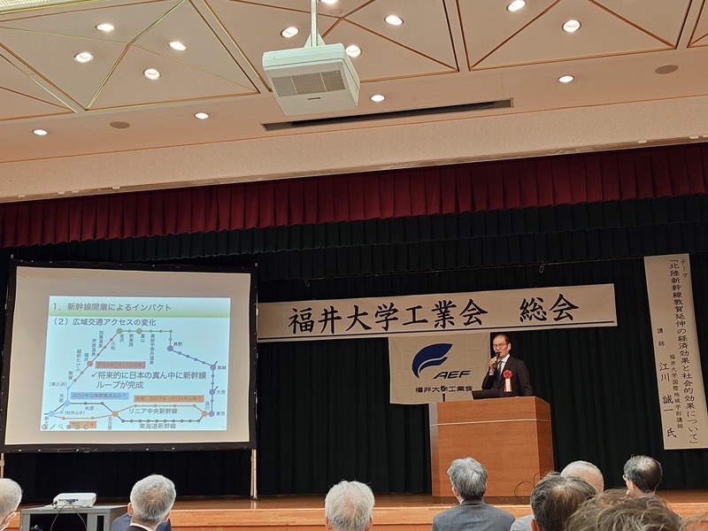 昨日14日、坂井市三国町の「三国オーシャンリゾート&ホテル」において福井大学工業会2025年度総会が開催され、国際地域学部の江川誠一先生による記念講演を拝聴しました。