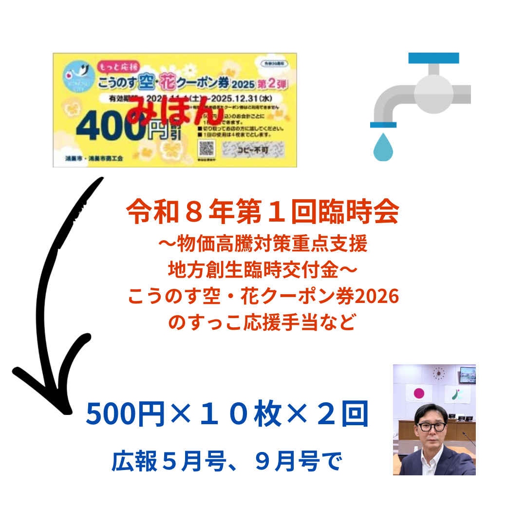 ホーム>政党・政治家>中西 こうじろう (ナカニシ コウジロウ)>【鴻巣市】物価高騰対応支援(令和8年第1回臨時会開催)