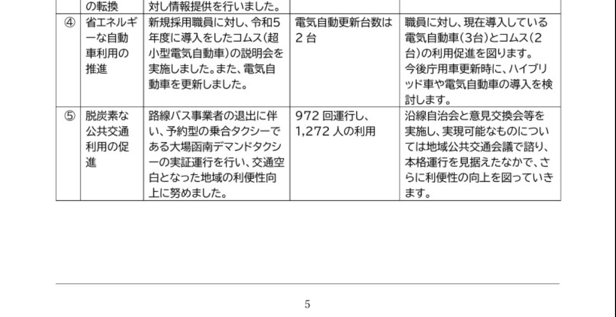 ⑤電気自動車 2台の実績を記入するべきと意見し、採用。