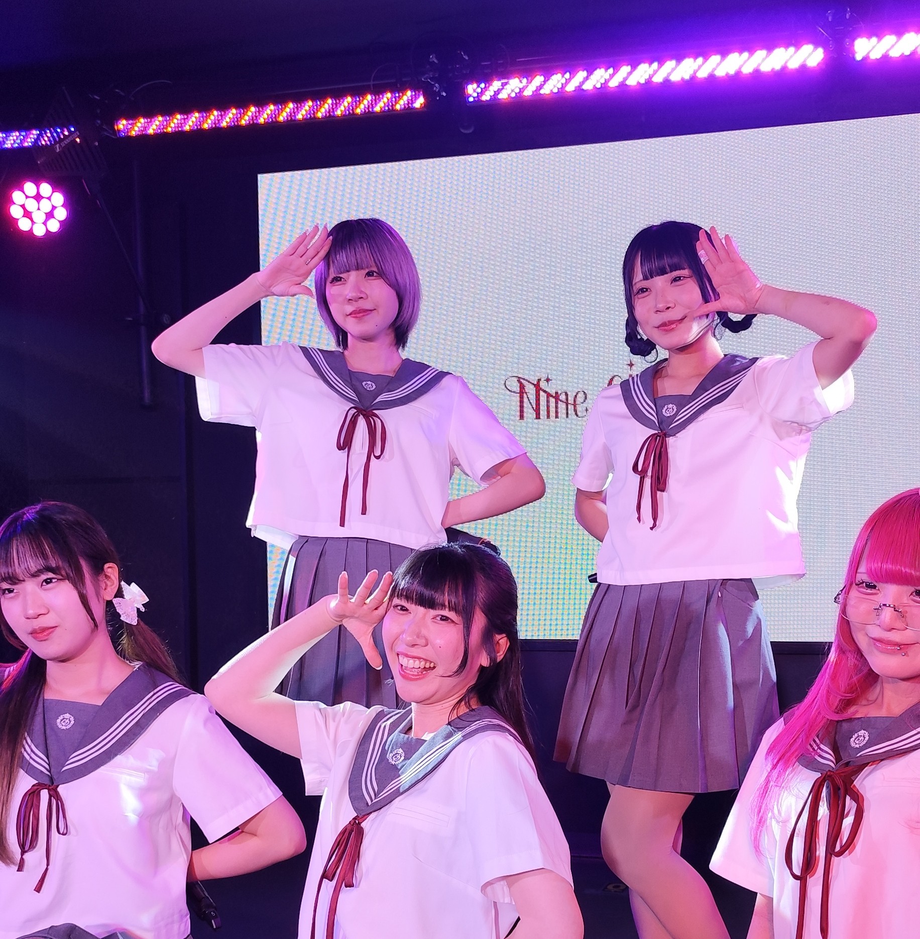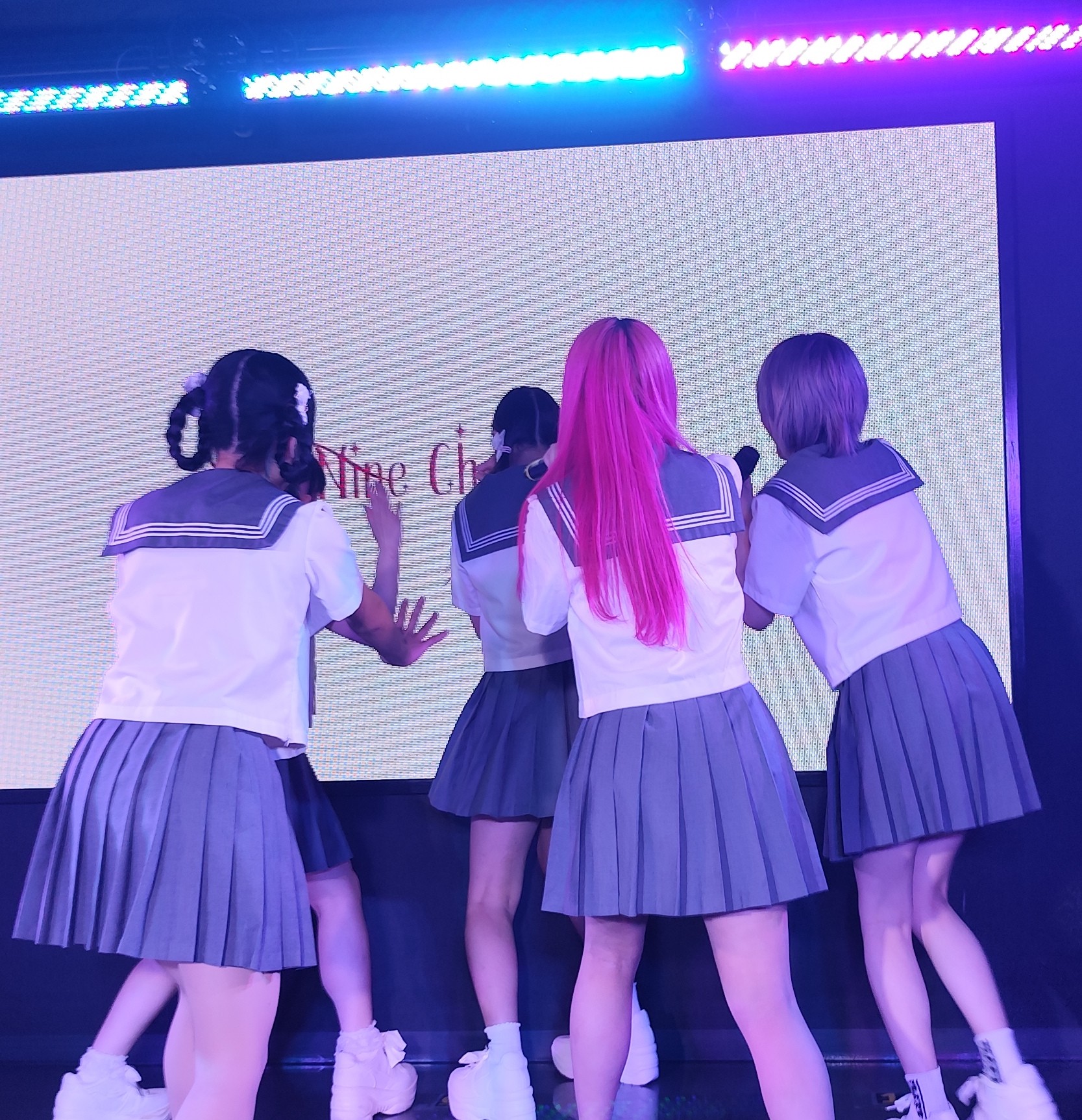 Nine chocolatesは、メイドアイドル。6人組だが、この日は、猫乃めあさんお休みのため、出演は5人。