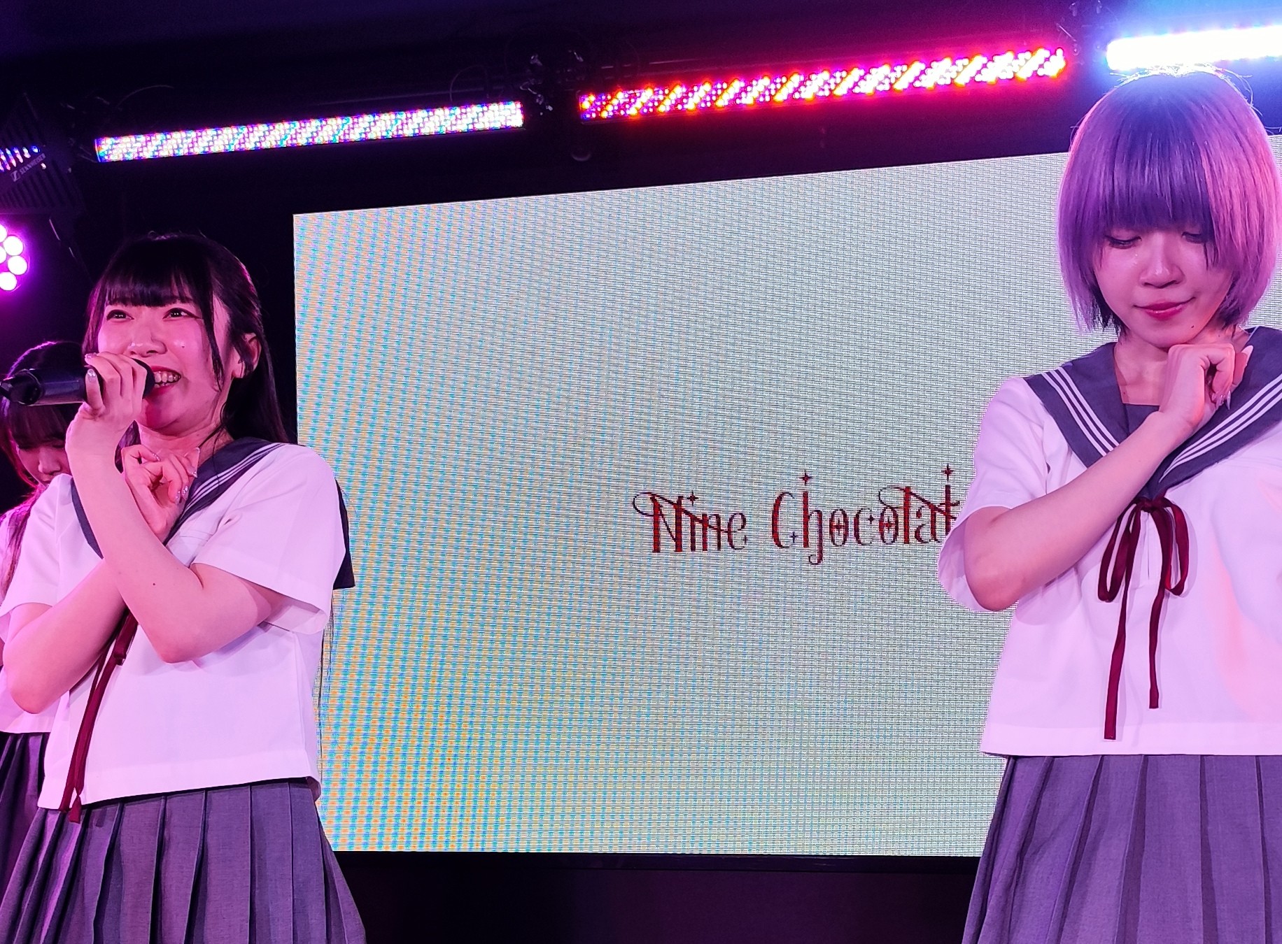 現在は、大きなイベント出演をかけて、ROAD TO @ JAM EXPOに集中しているNine chocolates、直後には、歌舞伎町UP GATE↑↑通称「カブキアゲ」への出演と、大きなイベント出演が続く。ワンコインライブだけでなく、平日のライブイベント出演全体を見直しているのかもしれない。