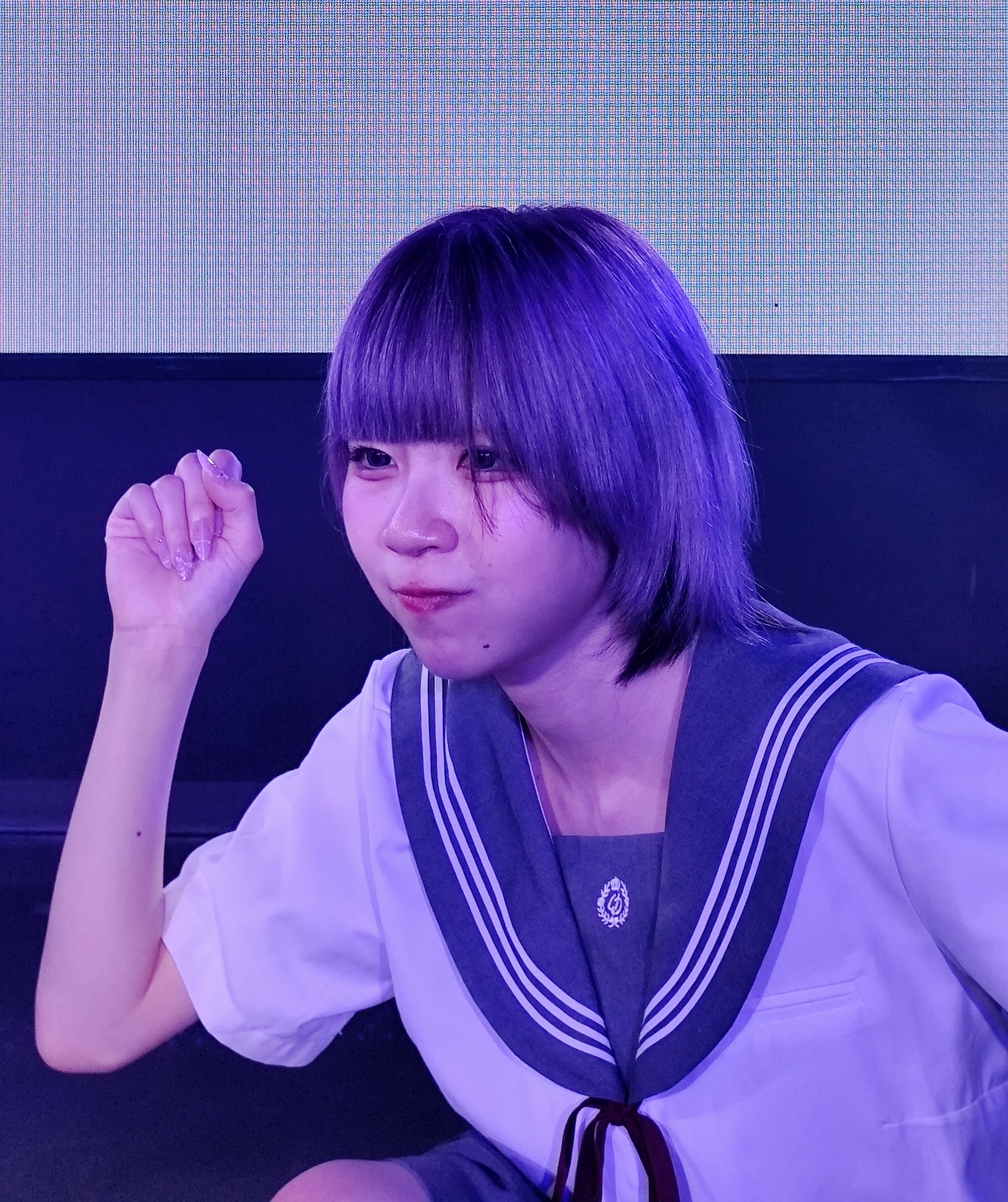 同じ場所から撮影しているから、同じようなカットは増えるが、miuzic 所属タレント一覧ページによると、「自身のファッションセンスや見せ方にも定評があり、メンバーやファンの間でもファッションリーダー的な存在」との文章があった。表情豊かなのに、ライブ中の様々な写真、うまく撮影できていないだけかもしれない。