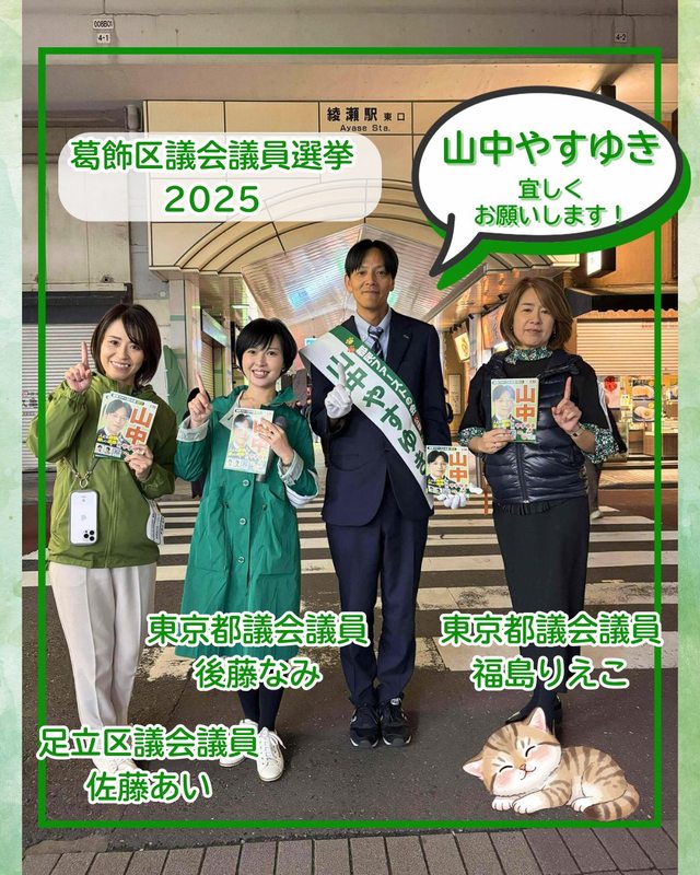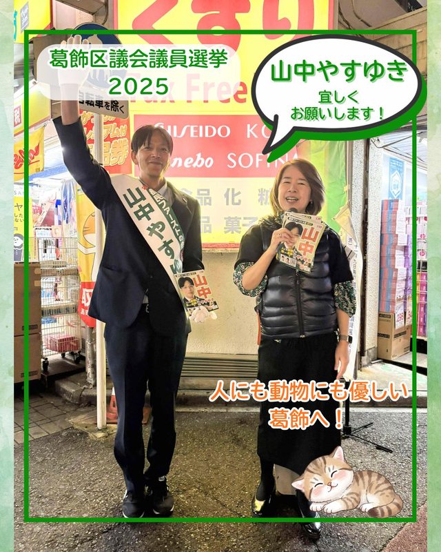 #葛飾区議会議員選挙 #都民ファーストの会 #山中やすゆき #動物愛護 #子育て支援 #議会改革 #綾瀬駅東口