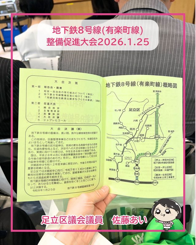 ホーム>政党・政治家>佐藤 あい (サトウ アイ)>【足立区】地下鉄8号線整備促進大会へ。