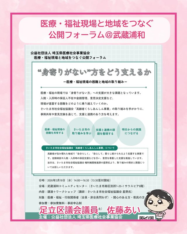 ホーム>政党・政治家>佐藤 あい (サトウ アイ)>医療・福祉の現場と地域をつなぐ公開フォーラム(武蔵浦和)に参加しました。