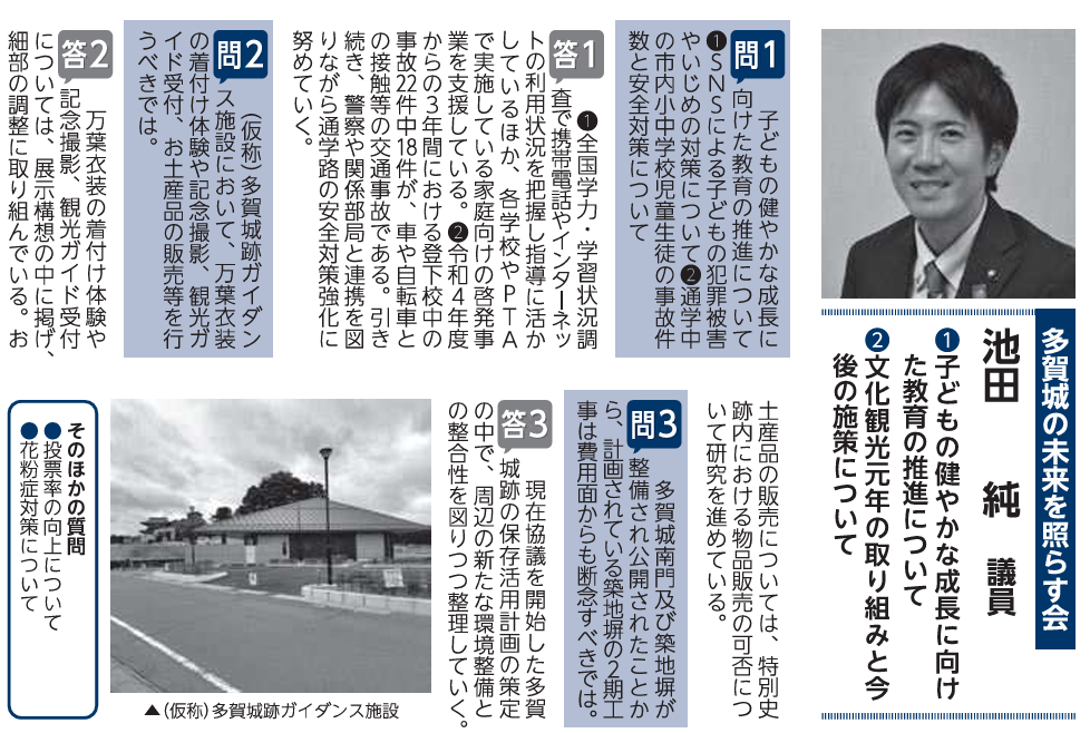 ホーム>政党・政治家>池田 純 (イケダ ジュン)>【宮城県多賀城市議会】令和6年第4回定例会一般質問(池田純)議事録(令和6年12月13日実施)