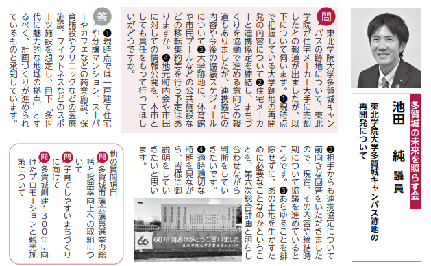 ホーム>政党・政治家>池田 純 (イケダ ジュン)>【宮城県多賀城市議会】令和5年第3回定例会一般質問議事録(令和5年9月29日実施)