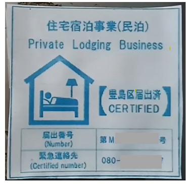 届出している民泊がマンションや一戸建てにある場合、このようなシールが貼られるのだと初めて知りました。