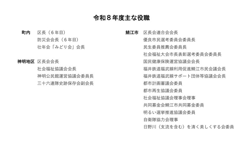 本日は鯖江市区長会連合会幹事会でした役員人事が承認され、正式に連合会会長に就任いたしました夜の...