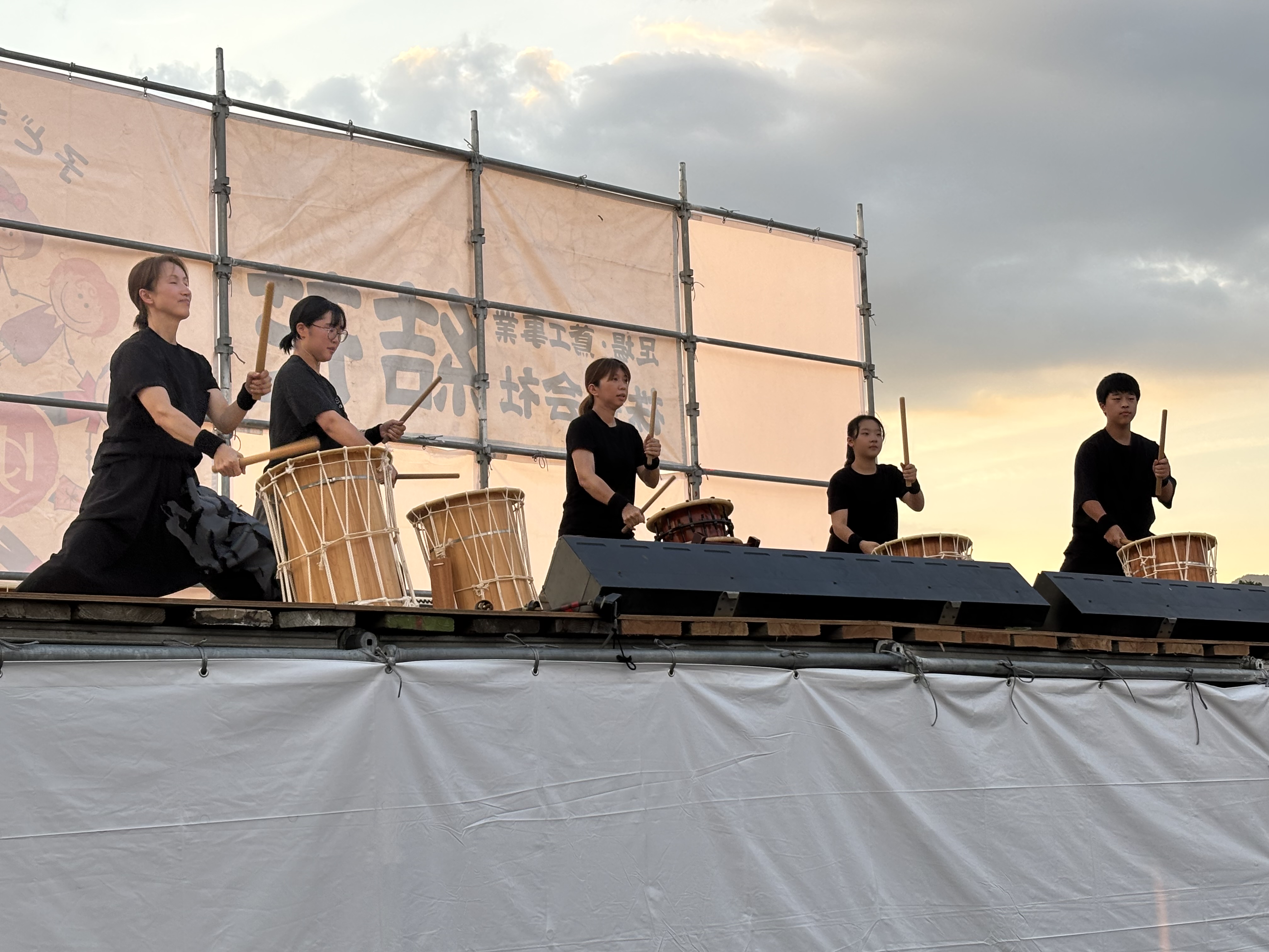 18時にはステージイベントも始まり、美作大学の吹奏楽や太鼓の演奏でオープニングを飾ってもらいました。