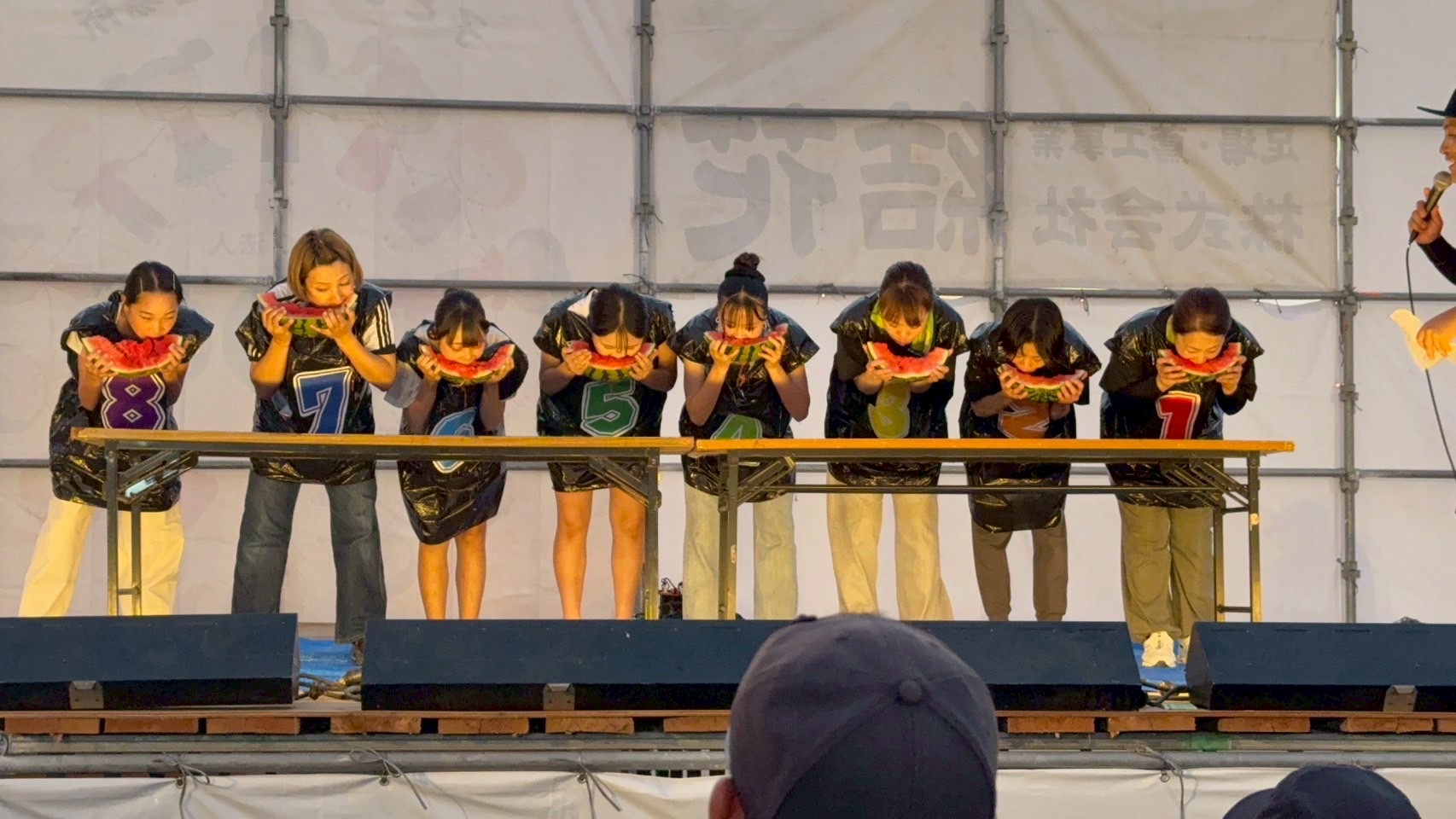 参加型のスイカ早食い、コーラ早飲み、大縄跳びも大盛り上がりでした。