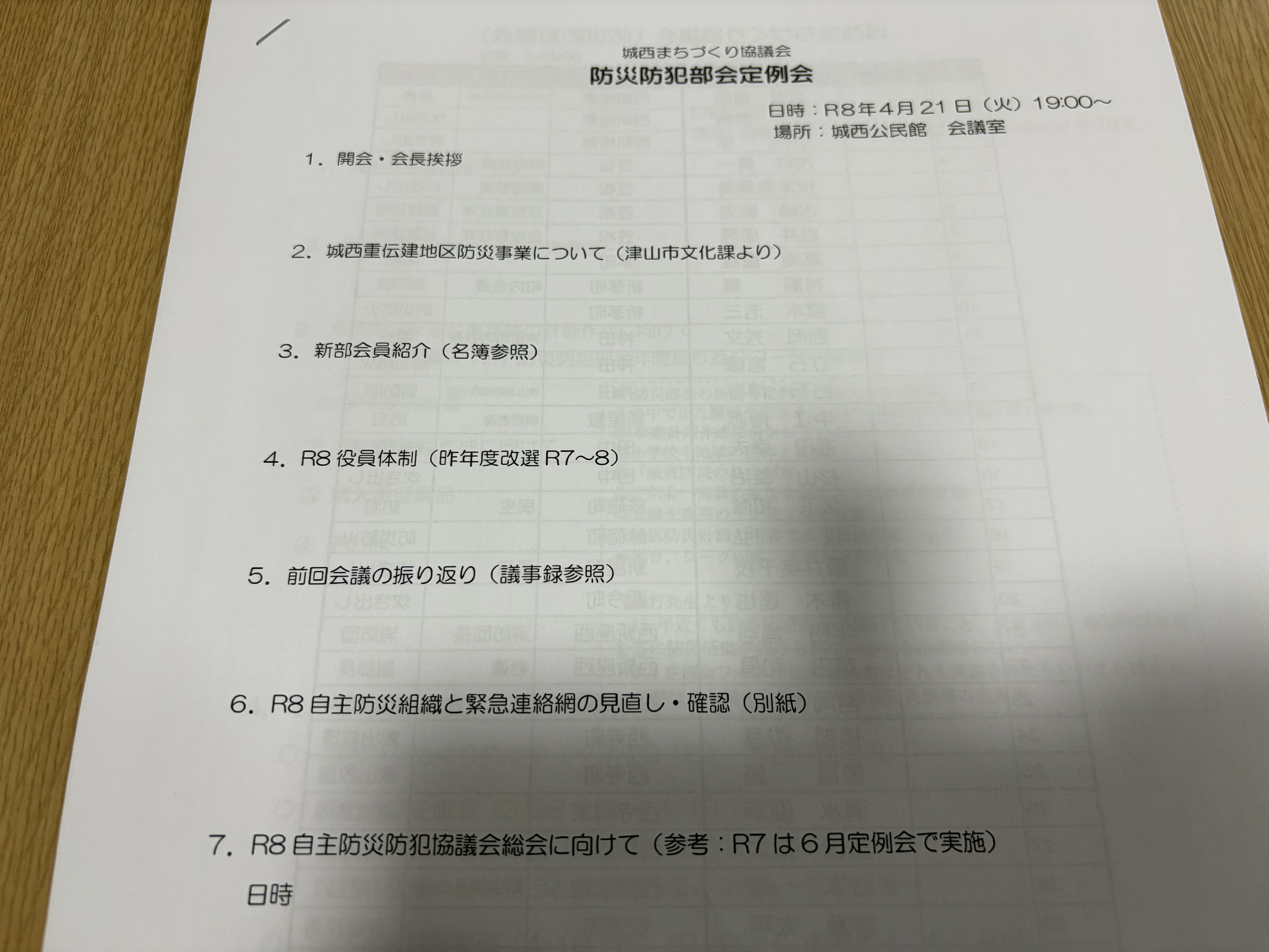 夜は城西まちづくり協議会の防災防犯部会へ。
