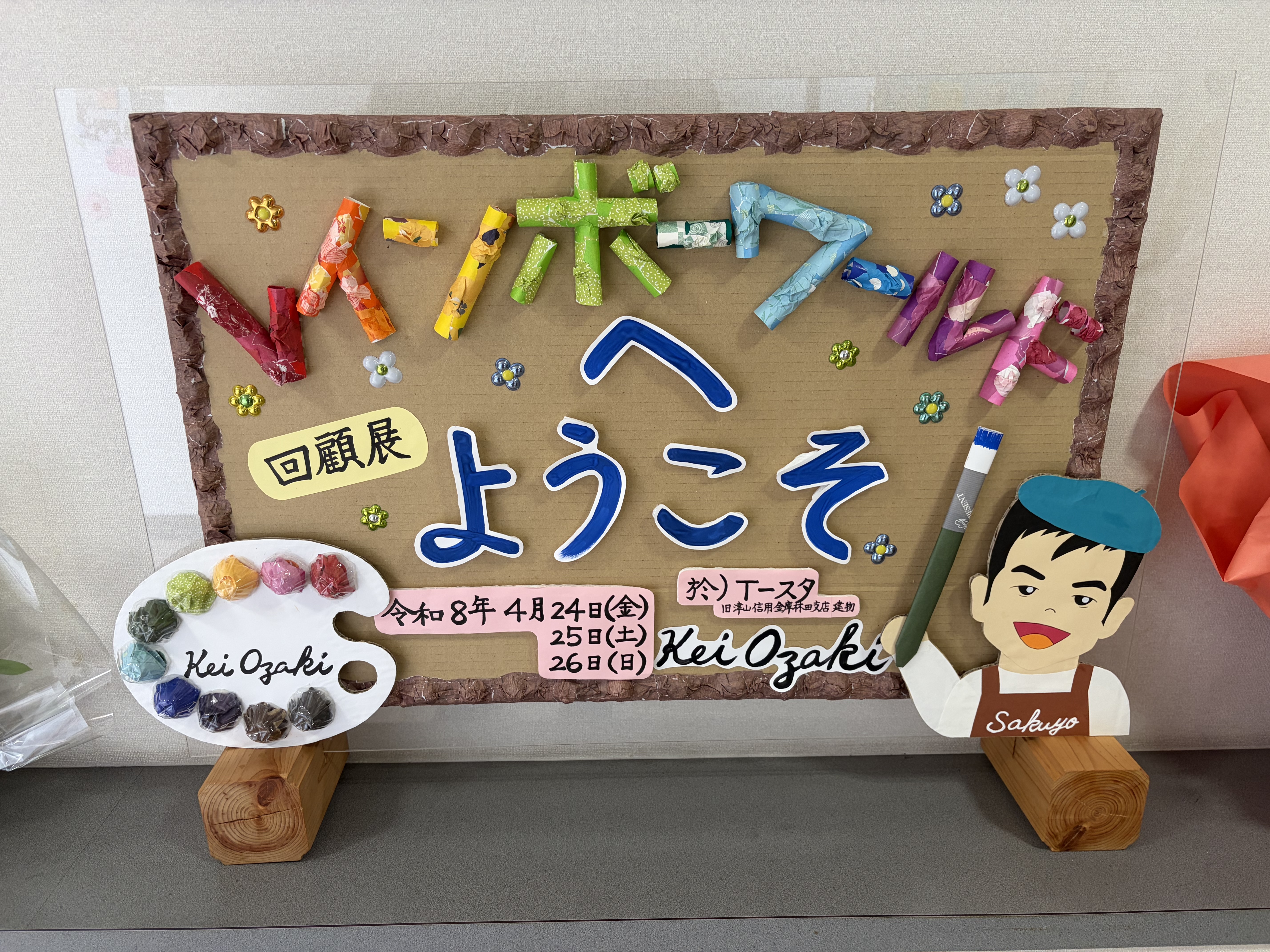 津山で生まれ育った尾崎圭さんの29年間の歴史を作品として展示されていました。