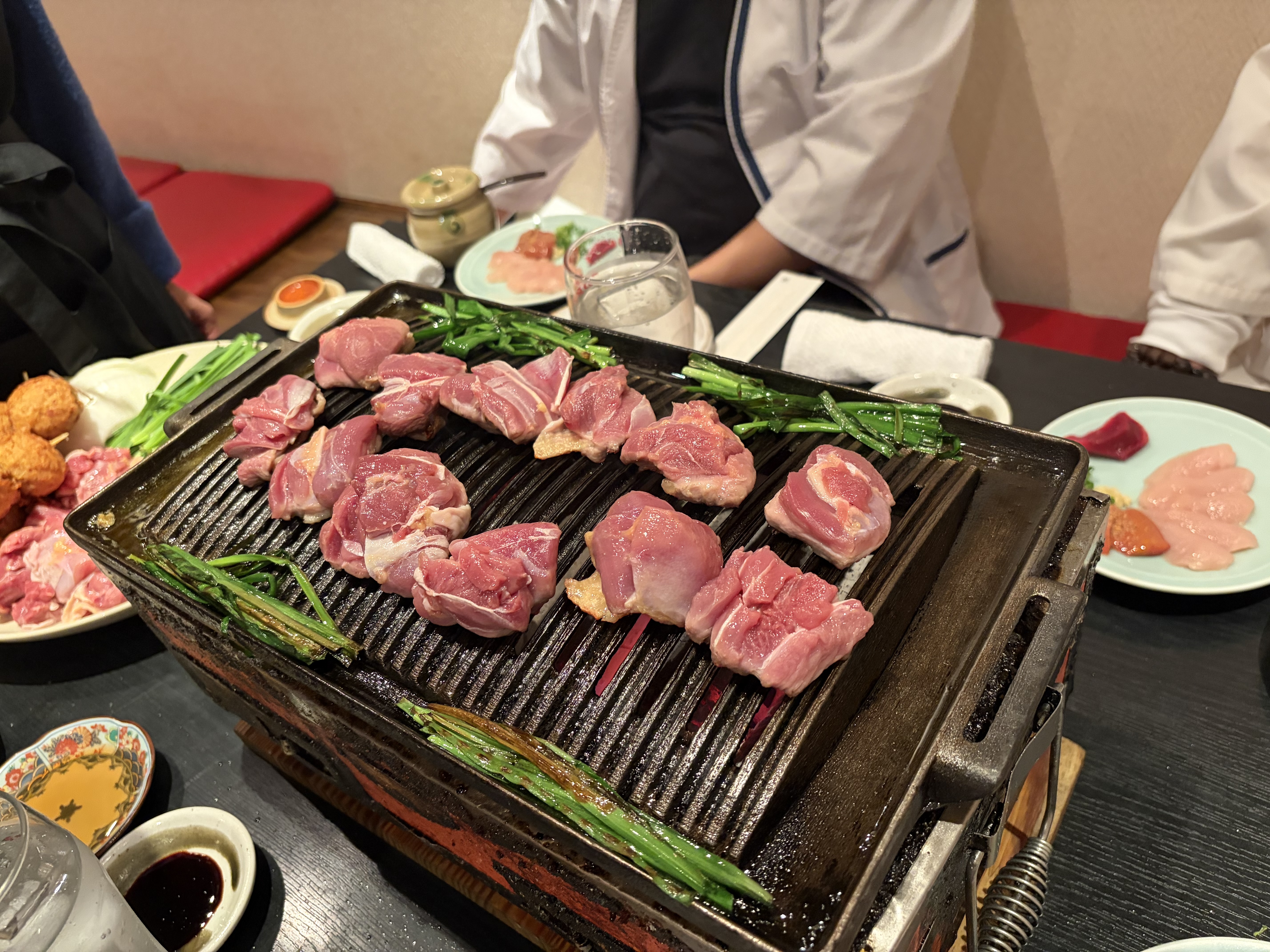 鳥刺しや弾力のある鳥を焼き肉のようにロースターで焼いて食べるスタイル。