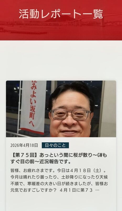 ホーム>政党・政治家>池脇 まさひこ (イケワキ マサヒコ)>池脇まさひこホームページの活動レポート「【第75回】あっと言う間に桜が散り〜GWもすぐ目の前〜...